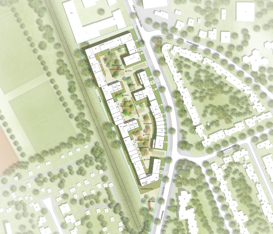 Gegenstand des einphasigen Wettbewerbs – ausgelobt von der Quantum Projektentwicklung GmbH und der Baugenossenschaft dhu eG – war die Entwicklung eines städtebaulich-freiraumplanerischen Konzeptes für ein Grundstück an der viel befahrenen Julius-Vosseler-Straße in Hamburg Stellingen.
