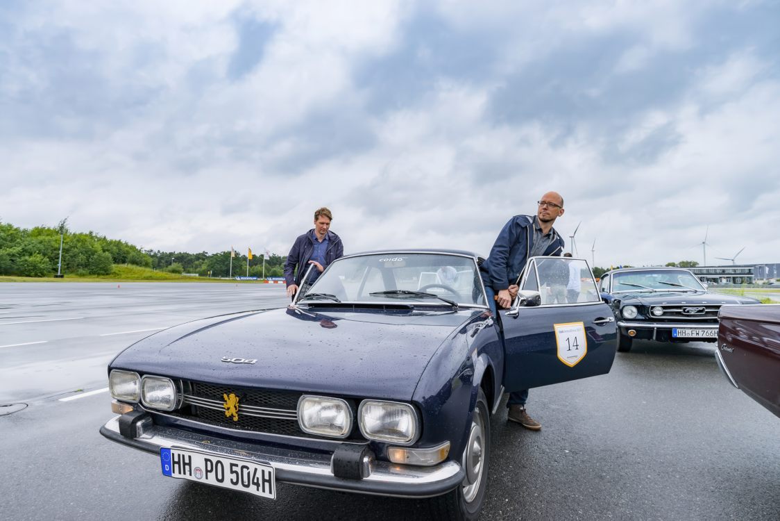 Mit weiteren 34 Old- und Youngtimern begeben wir uns auf die rund 170 Kilometer lange Rundstrecke durch das östliche Hamburger Umland. Start ist an der Oldtimer-Tankstelle Brandshof am Billhorner Röhrendamm in Hamburg. Der stete Regen wird von dem breiten Teilnehmerfeld als erfrischend empfunden.