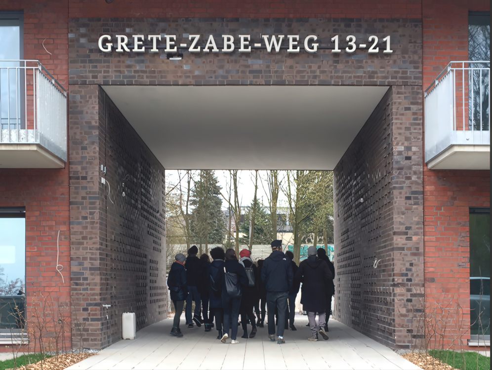 Die Mitglieder der Baugemeinschaft sind die ersten Bewohner, die das Gebäude am Grete-Zabe-Weg beziehen. Die Mieter der SAGA und der FLUWOG-NORDMARK eG folgen in Kürze. Mit der gesamten Bürobesetzung besuchen wir Ende März kurz vor der Fertigstellung die Baustelle.