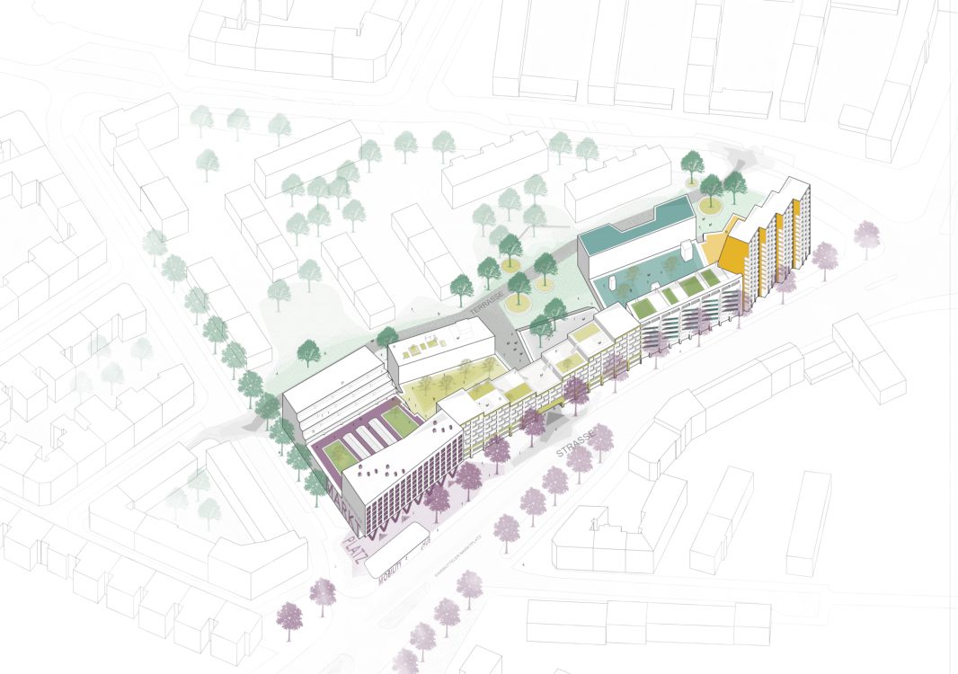 Unser Beitrag zur 1950er Jahre Siedlung am Eimsbütteler Marktplatz: Die Eimsbütteler Terrassen. Eine ortsspezifische Weiterentwicklung der Hamburger Terrasse, als Antwort und städtebauliches Bindeglied zwischen der Magistrale einer- und dem beschaulichen Eimsbüttel andererseits. Wir haben mit Freude teilgenommen.