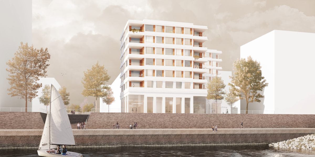 Die Flexibilität des Gebäudes spiegelt sich in einer rhythmisierten Fassade. Die modulare innere Grundstruktur erlaubt variable Bespielung durch die zukünftige Baugemeinschaft: Vertikale Versorgung und Tragsystem geben einen Rahmen vor, der unterschiedliche und sehr individuelle Grundrisse ermöglicht. Eine spätere Anpassung an veränderte Lebensbedingungen ist möglich. Im Vordergrund steht die Verzahnung von Wohnen und Arbeiten.