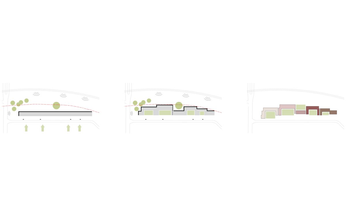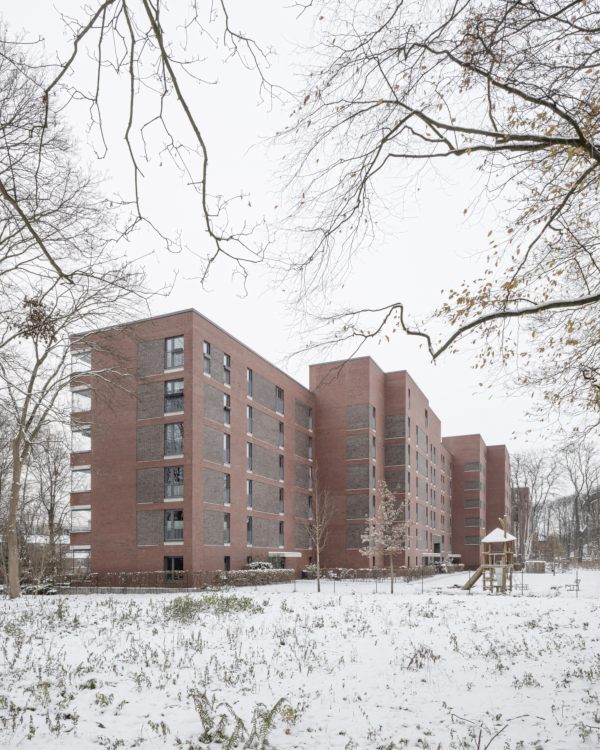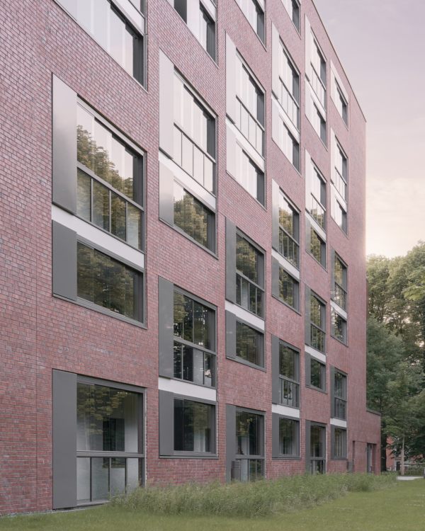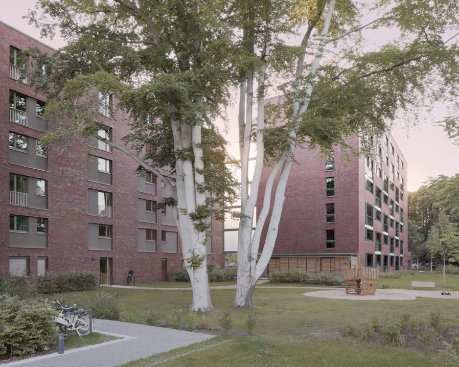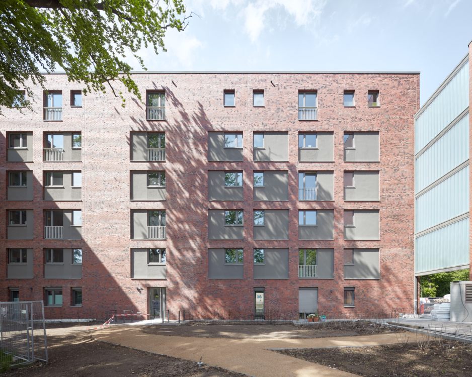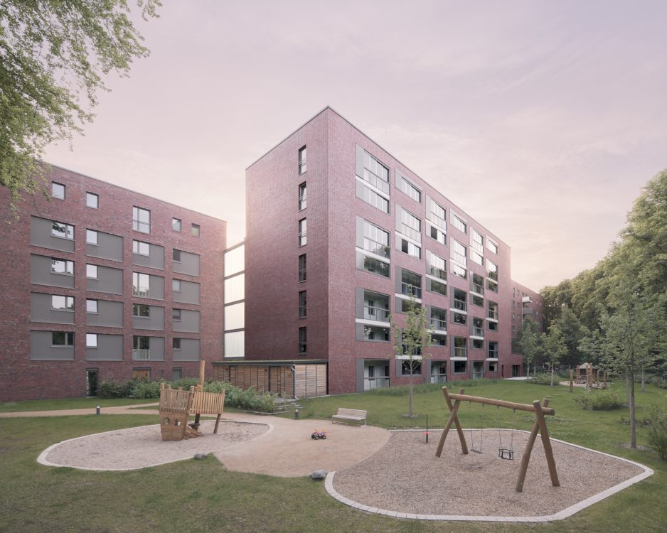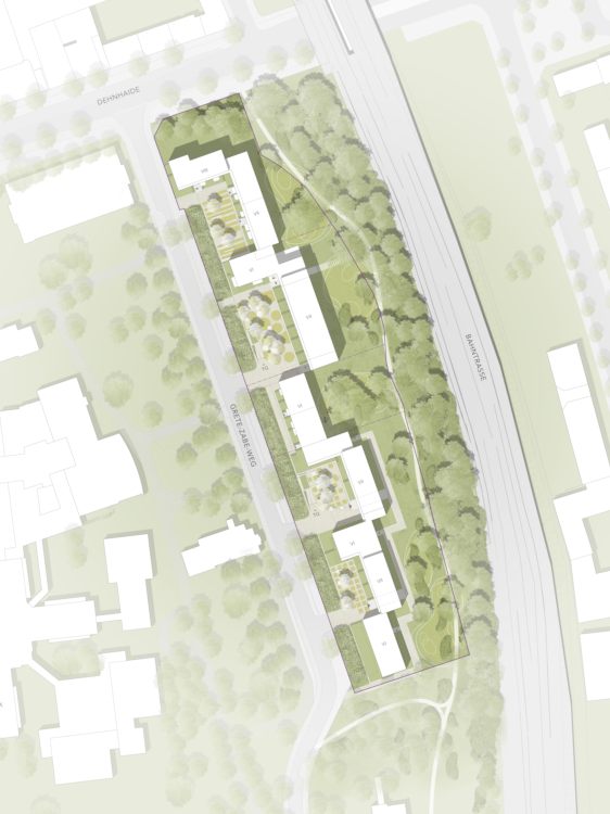 Das langgestreckte Grundstück im Hamburger Stadtteil Barmbek-Süd befindet sich in unmittelbarer Nähe zu einem übergeordneten Grünzug, ist von altem Baumbestand gesäumt und u.a. durch eine benachbarte S-Bahn-Station hervorragend angebunden. Eine östlich verlaufende Bahnstrecke jedoch sorgt für erhebliche Lärmeinwirkungen und Erschütterungen, auf die planerisch intensiv reagiert werden musste.