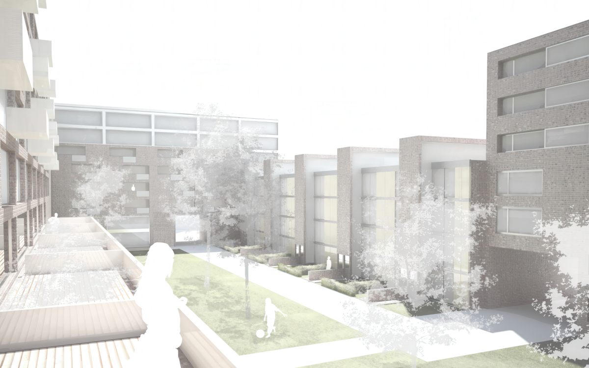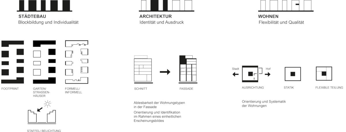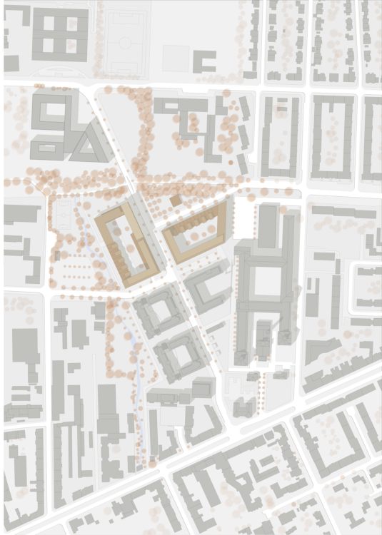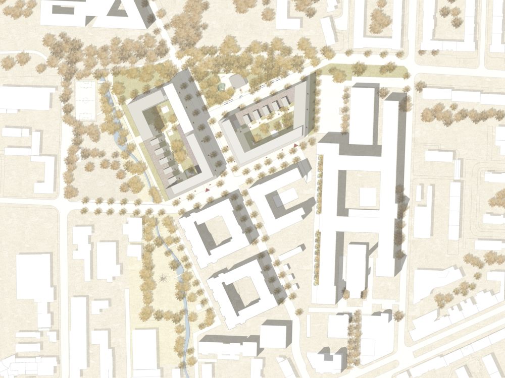 In Hannover wird das in den 1990er Jahren konzipierte Pelikan-Viertel weiterentwickelt. Ziel unseres Entwurfs ist es, in der sehr heterogenen Umgebung die Idee des Ordnens, die in dem bestehenden Masterplan entwickelt wurde, aufzunehmen und zu unterstützen. Zwei präzise gesetzte, klare Blockrandbebauungen strukturieren das Wettbewerbsgebiet, ergänzt um einen dreieckigen, grünen Block als nördlicher Auftakt des Pelikanviertels. In Ihrer Höhenstaffelung reagieren die Gebäude auf die angrenzenden stadträumlichen Situationen und bilden gleichzeitig die geforderten Wohnungstypen sinnvoll ab.