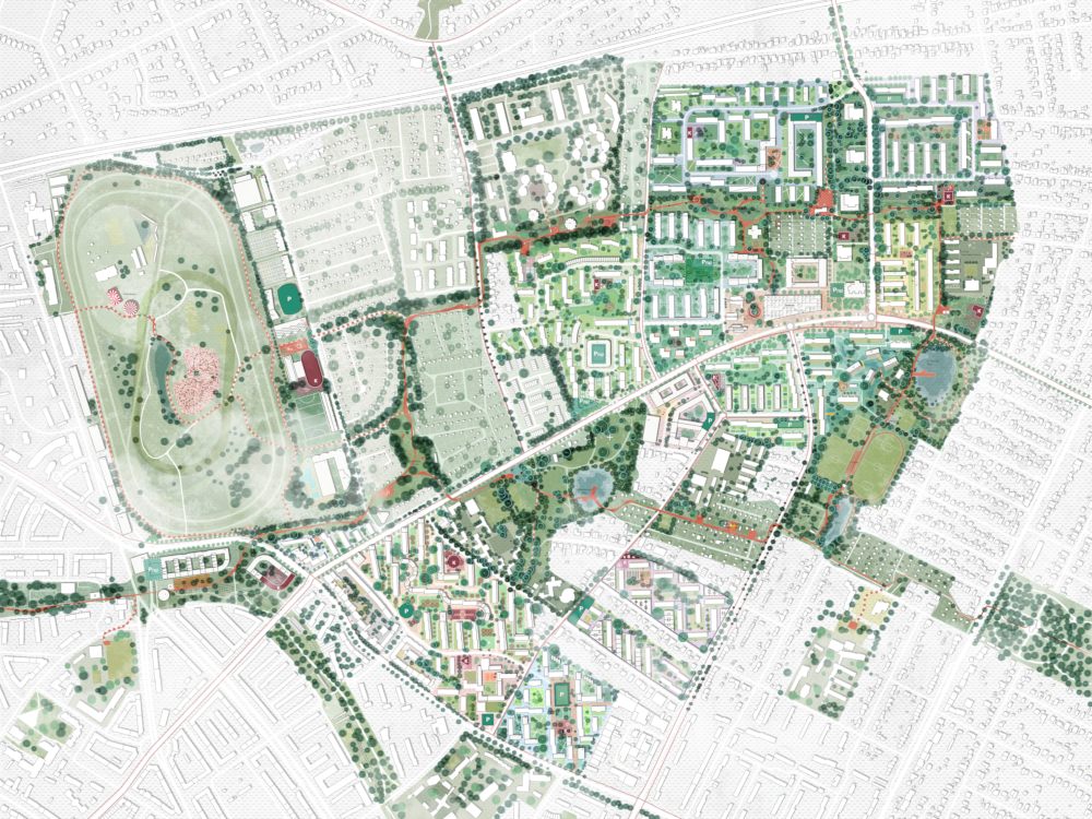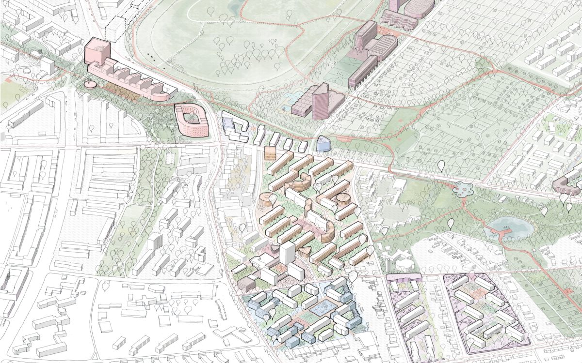 Ein lebendiges Stück Stadt entsteht: Vielfältige Bebauungstypologien und Freiräume, klare Hierarchien und Raumabfolgen, eigene Identitäten und Nachbarschaften – verbunden durch den Grünen Loop – schreiben bestehende Räume und die Identität des Ortes zeitgemäß und zukunftsorientiert fort. Es entsteht ein durchmischter Stadtteil, in dem jeder willkommen ist zu leben, zu arbeiten, zu lernen und zu spielen.