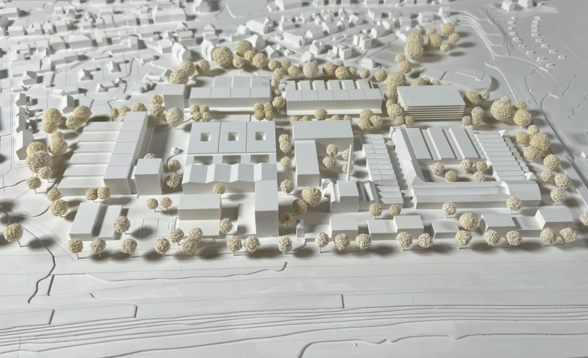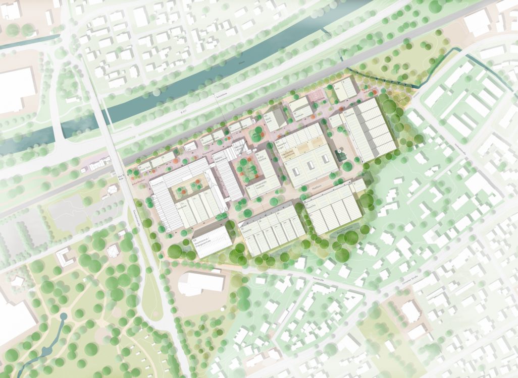 Die Vision der Kreisstadt Lörrach im Süden Baden-Wüttembergs nahe der Schweizer Grenze ist es, auf der rund neun Hektar großen Industriebrache des ehemaligen Textilunternehmens Lauffenmühle - Werk Wiese, inmitten der Stadt, das erste klimaneutrale Gewerbegebiet in Holzbauweise in Deutschland zu entwickeln.