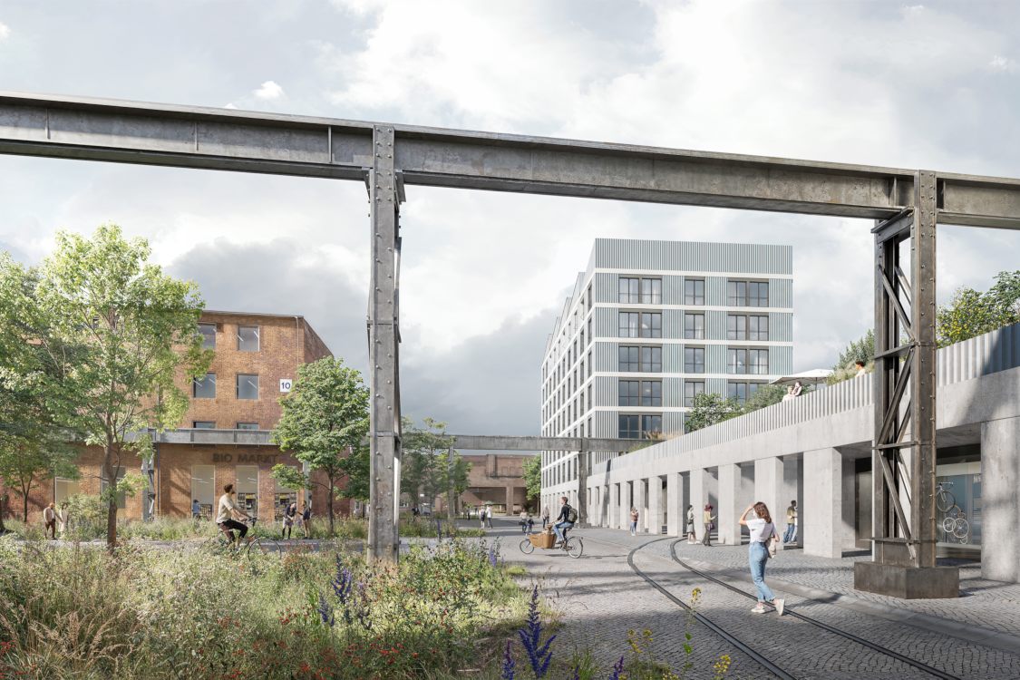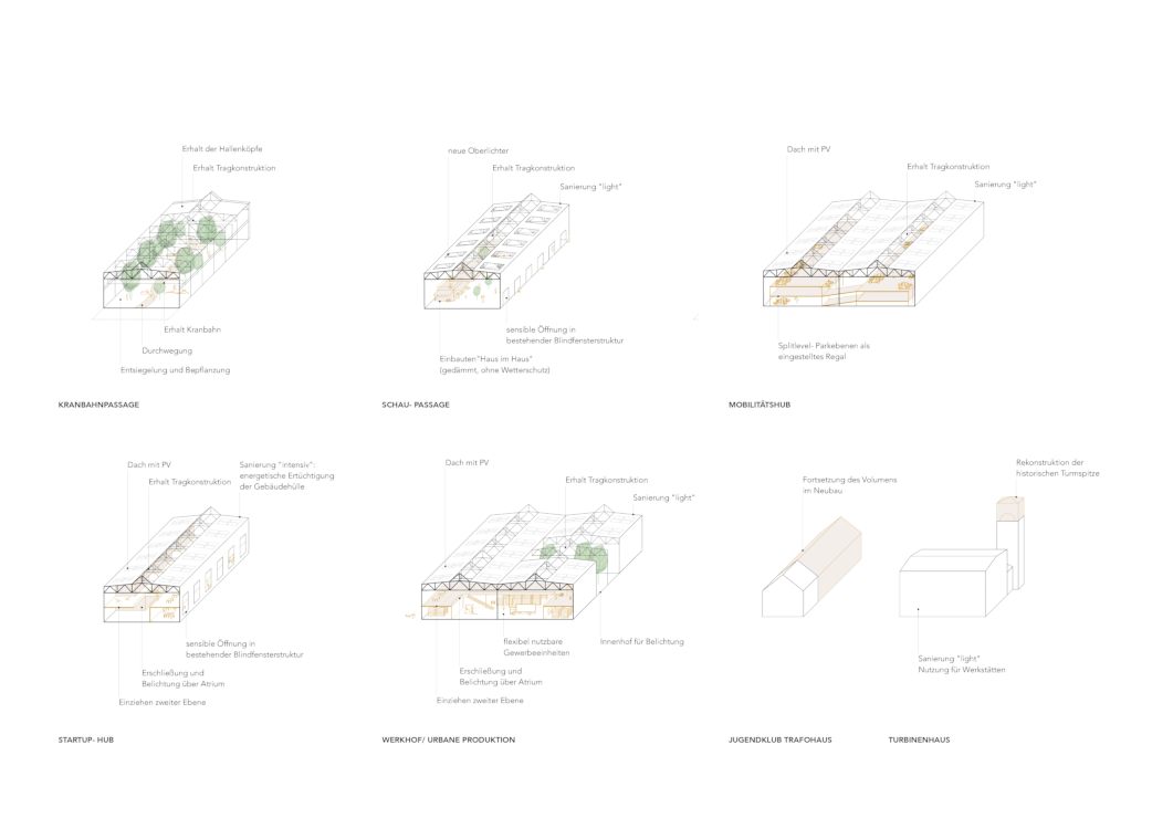 Sechs individuelle Bausteine bilden im historisch gewachsenen Kontext der Henschel Hallen eine postindustrielle Collage. Die Charaktere der neuen Bausteine verschränken sich zu einem nachhaltigen und vielfältigen Quartier aus Gewerbe, Leichtindustrie, Wohnen und Freizeit. Der behutsame Umgang mit dem vorgefundenen und das präzise Setzen von neuen Ergänzungen schaffen eine dichte und lebendige Atmosphäre auf dem geschichtsträchtigen Areal. Wir freuen uns über den ersten Platz im Wettbewerb.